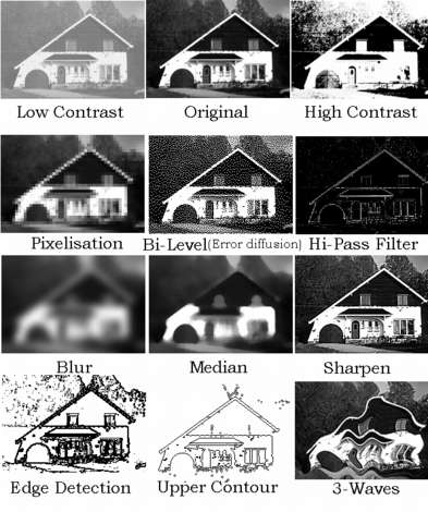 Prenons le cas d'une image vidéo provenant d'un appareil d'échographie ou de radiographie médical.. L'ordinateur est utilisé pour améliorer la qualité de l'image obtenue ou pour mettre en évidence certains attributs : augmentation du contraste, réduction du bruit de fond, suppression de niveaux de gris indésirables, insertion de texte dans l'image.